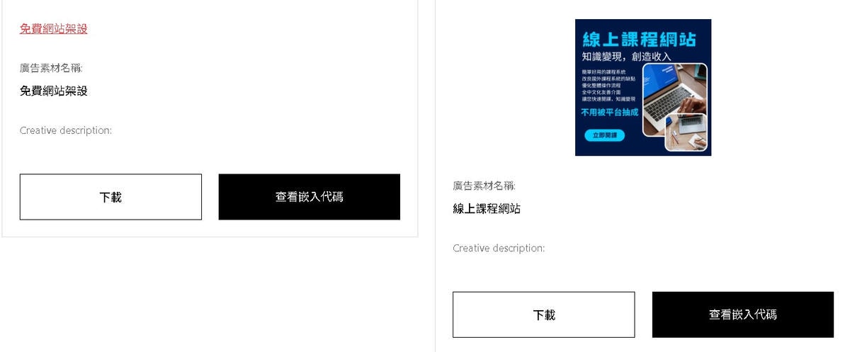 貼上聯盟行銷推廣連結代碼
