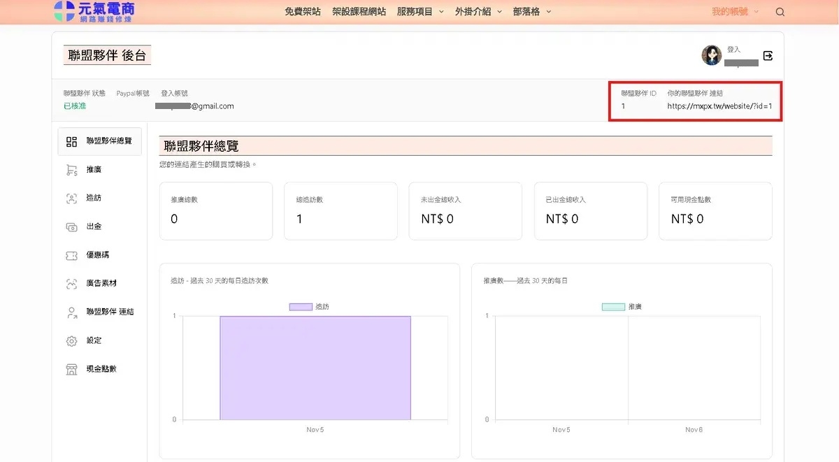 例如:我的ID為 “1”,我的專屬推廣連結=https://old.mxpx.tw/?id=1